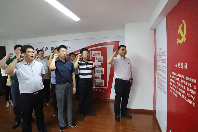 重温入党誓词。面对鲜红的党旗,公司党支部书记冯志强带领全体党员庄严宣誓,重温了入党誓词。引导全体党员回顾了入党宣誓时的庄严承诺和坚定决心,提醒党员时刻牢记入党初心,自觉遵守党的章程,终身践行入党誓言,肩负起共产党员的政治责任和历史使命。